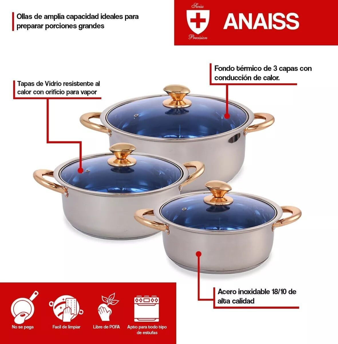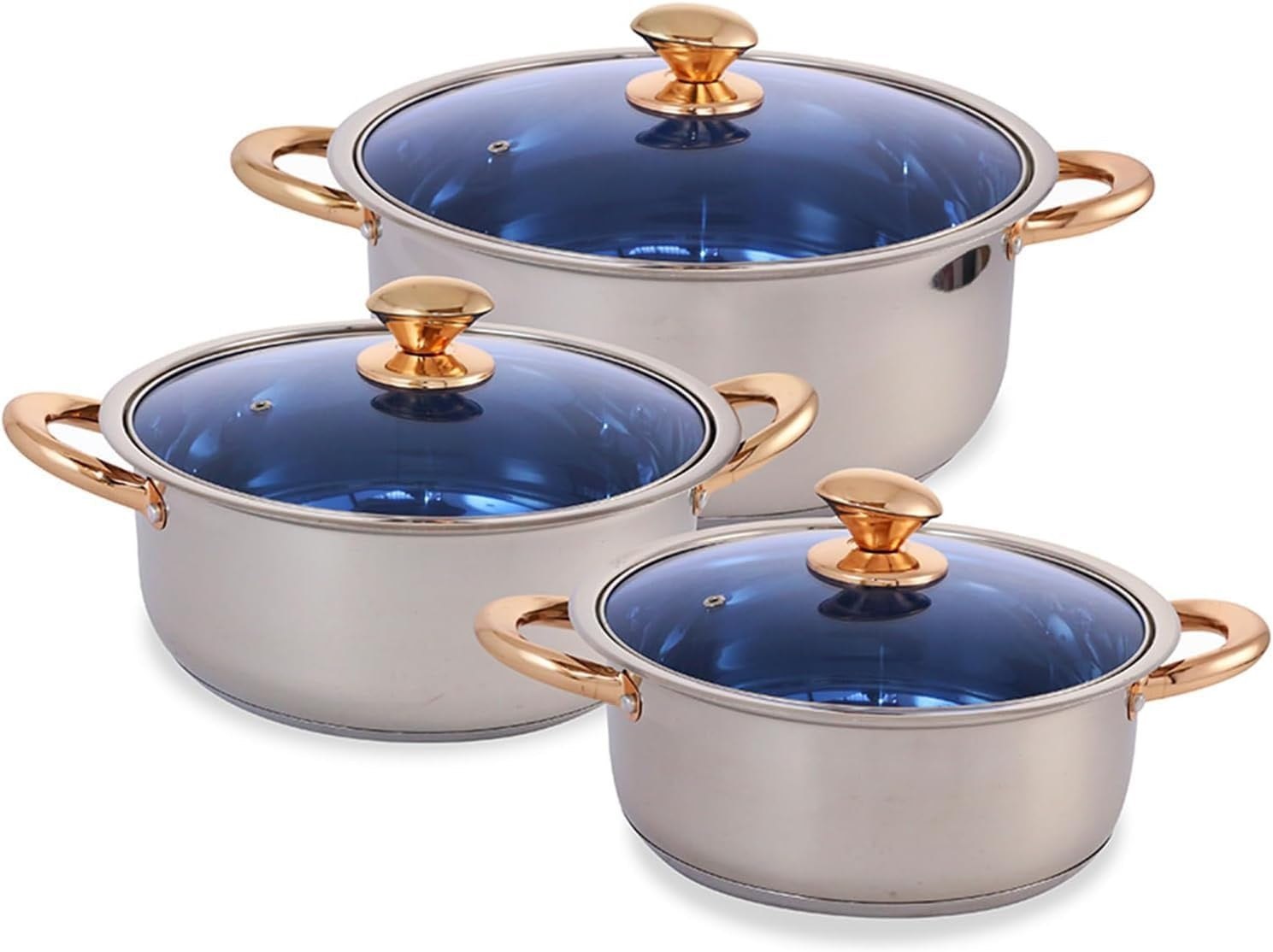 Juego De 3 Ollas Arroceras Royal Haus By Apolo De Acero Inoxidable 20, 24 y 26 Cm Plateado
